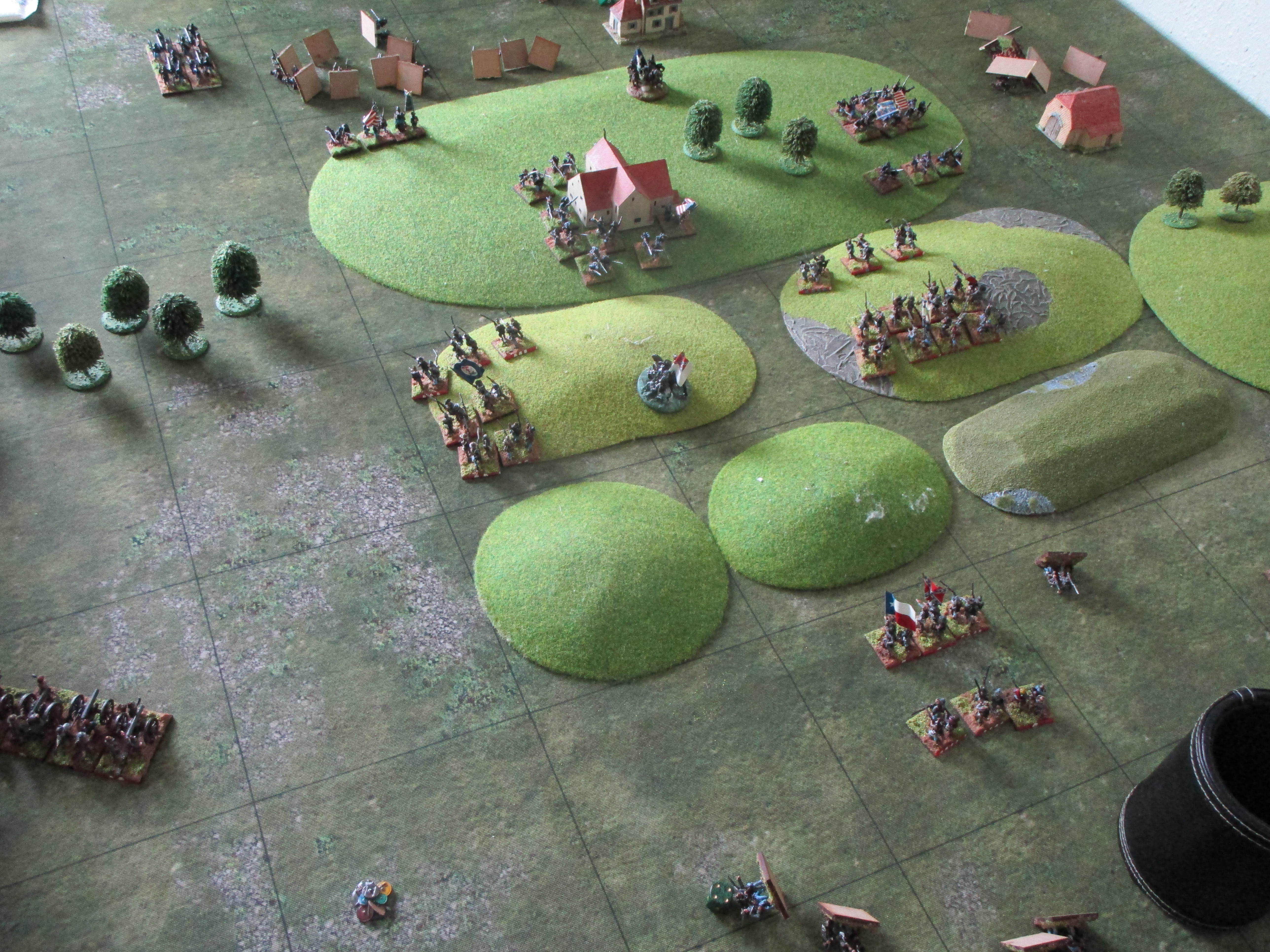 It has been reported as typical of the southern slave owning oligarchy our loyal militia were attacked in their encampment. Fighting of a number grey clad waves of infantry our boys in blue held on to the farm buildings. As the day drew to a close and the grey infantry massing our gallant cavalry were throw in to disperse them. The charge smashed into the enemy as they attempted to outflank our brave garrison of Hook's Farm dispersing them. The pursuit lead our mounted titans into a hail of artillery fire as the attempted to capture the guns. The charge ended the day apart from a final weak assault on the farm which was thrown back.